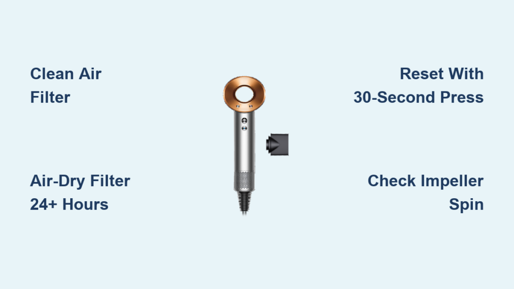 Dyson’s engineering assumes perfect airflow, your role is maintaining that condition. Treat filter care like changing your car’s oil; skipping it guarantees premature failure. When done correctly, your dryer should run cool enough to touch after 10 minutes of continuous use. If it feels hot, stop immediately and re-clean the filter.